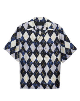 프라다 쇼트 슬리브 아가일 패턴 실크 트월 셔츠