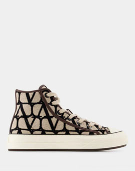발렌티노 가라바니 플록 그래픽 스니커즈 브라운