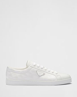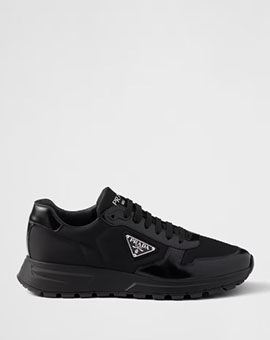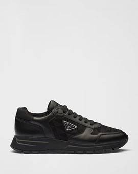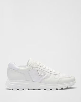 프라다 프랙스 01 리나일론 및 브러쉬드 가죽 스니커즈