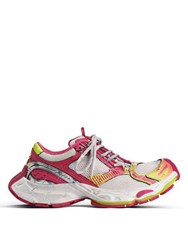발렌시아가 남성 스테이플러 스니커즈 화이트/핑크/플루오 옐로우/실버