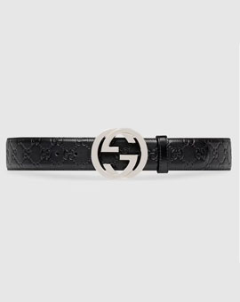 구찌 인터로킹 G 버클 와이드 벨트