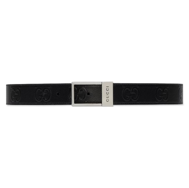 구찌 GG 러버 이펙트 레더 벨트 블랙 GG 레더