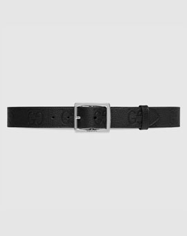 구찌 점보 GG 러버 효과 레더 벨트