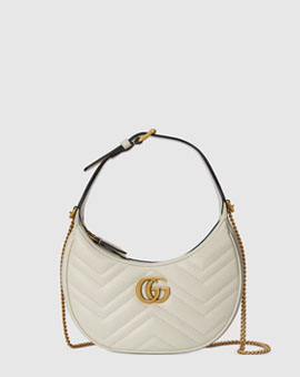 구찌 GG 마몽 하프 문 쉐이프 미니백 화이트 레더