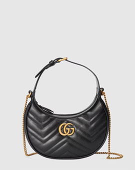 구찌 GG 마몽 하프 문 쉐이프 미니백 블랙 레더