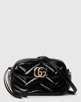 구찌 GG 마몽 스몰 숄더백 블랙 페이턴트 레더