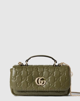 구찌 GG 밀라노 미니 탑 핸들백 그린 레더