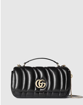 구찌 GG 마몽 스몰 탑 핸들 백 블랙 레더