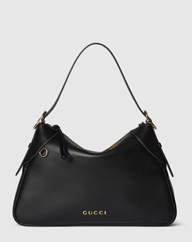 구찌 GG 엠블럼 미디움 숄더백 블랙 레더