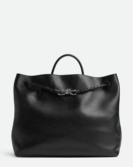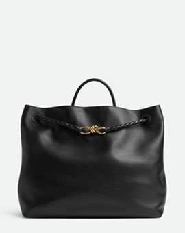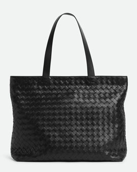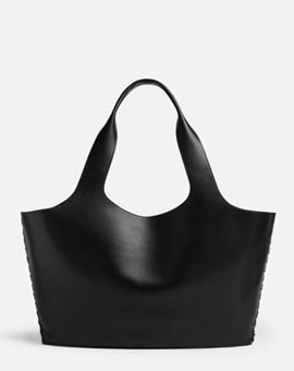 보테가 베네타 라지 인트레치아토 레더 지퍼 토트백 블랙