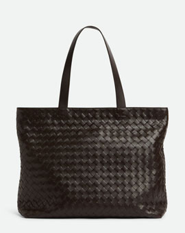 보테가베네타 라지 인트레치아토 지퍼 토트 백 브라운