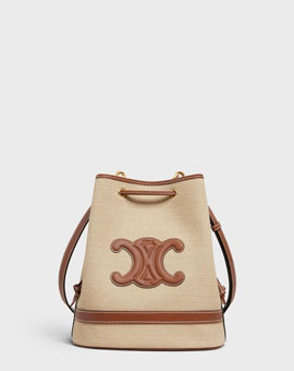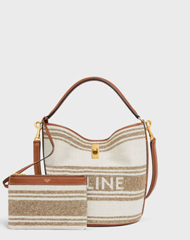 셀린느 자카드 카프스킨 스트라이프 텍스타일 버킷 16 백 토바코 탄