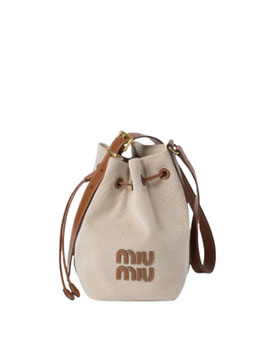 미우 미우 캔버스 레더 버킷백 베이지 브랜디 5BE090