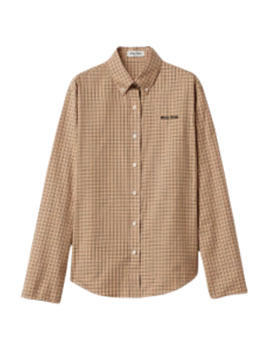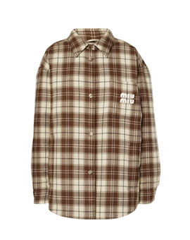 미우 미우 로고 패치 체크 울 다운 셔츠 재킷