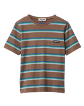 미우 미우 스트라이프 코튼 반팔 티셔츠