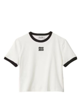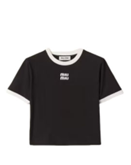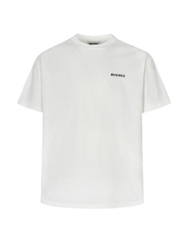 미우 미우 엠브로이더드 로고 코튼 저지 티셔츠