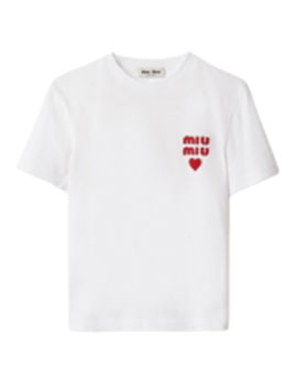 미우 미우 하트 로고 자수 패치 코튼 티셔츠