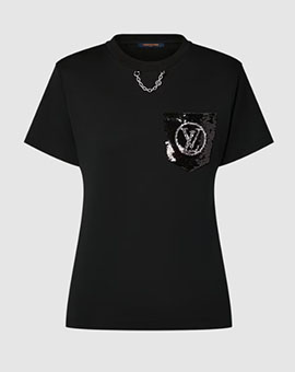 미우 미우 엠브로이더드 로고 코튼 저지 티셔츠
