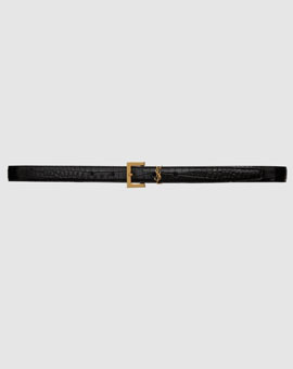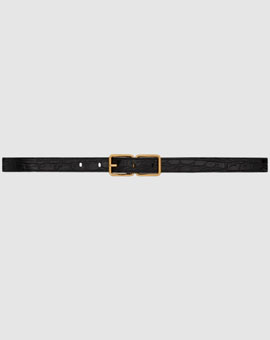 생로랑 카산드라 씬 벨트 스퀘어 버클 크로커다일 엠보스 레더 블랙 20MM