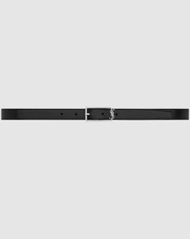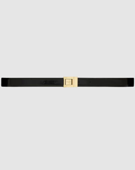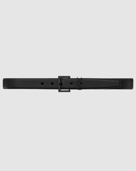 생로랑 카산드라 그레인 레더 스퀘어 버클 씬 벨트 블랙