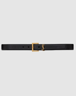 생로랑 스무스 레더 골드 모노그램 벨트 블랙