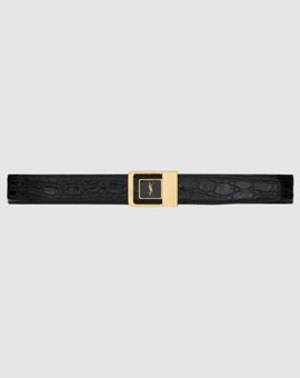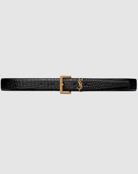 생로랑 카산드라 벨트 스퀘어 버클 샤이니 크로커다일 엠보스 레더 블랙 30MM